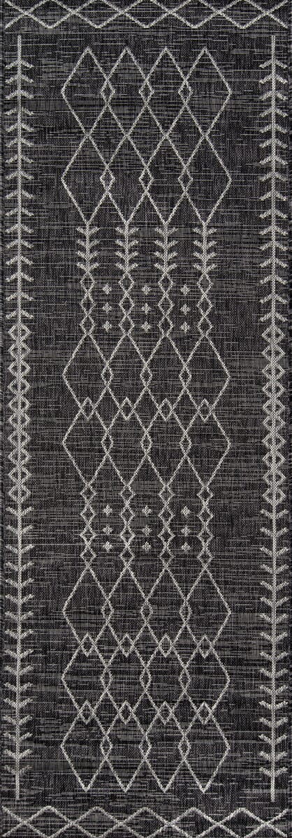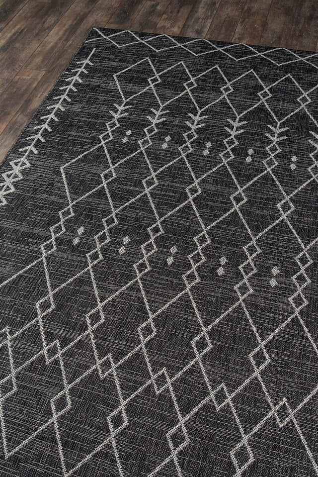 An indoor/outdoor rug assortment that exudes contemporary cool, this modern area rug collection features repetitive patterns inspired by international architectural motifs. The all-weather rug series emphasizes graphic geometric prints, using high contrast of shades to draw attention toward the floor. Manufactured from durable polypropylene fibers, the decorative floorcovering series is a staple for statement-making interior and exterior spaces.