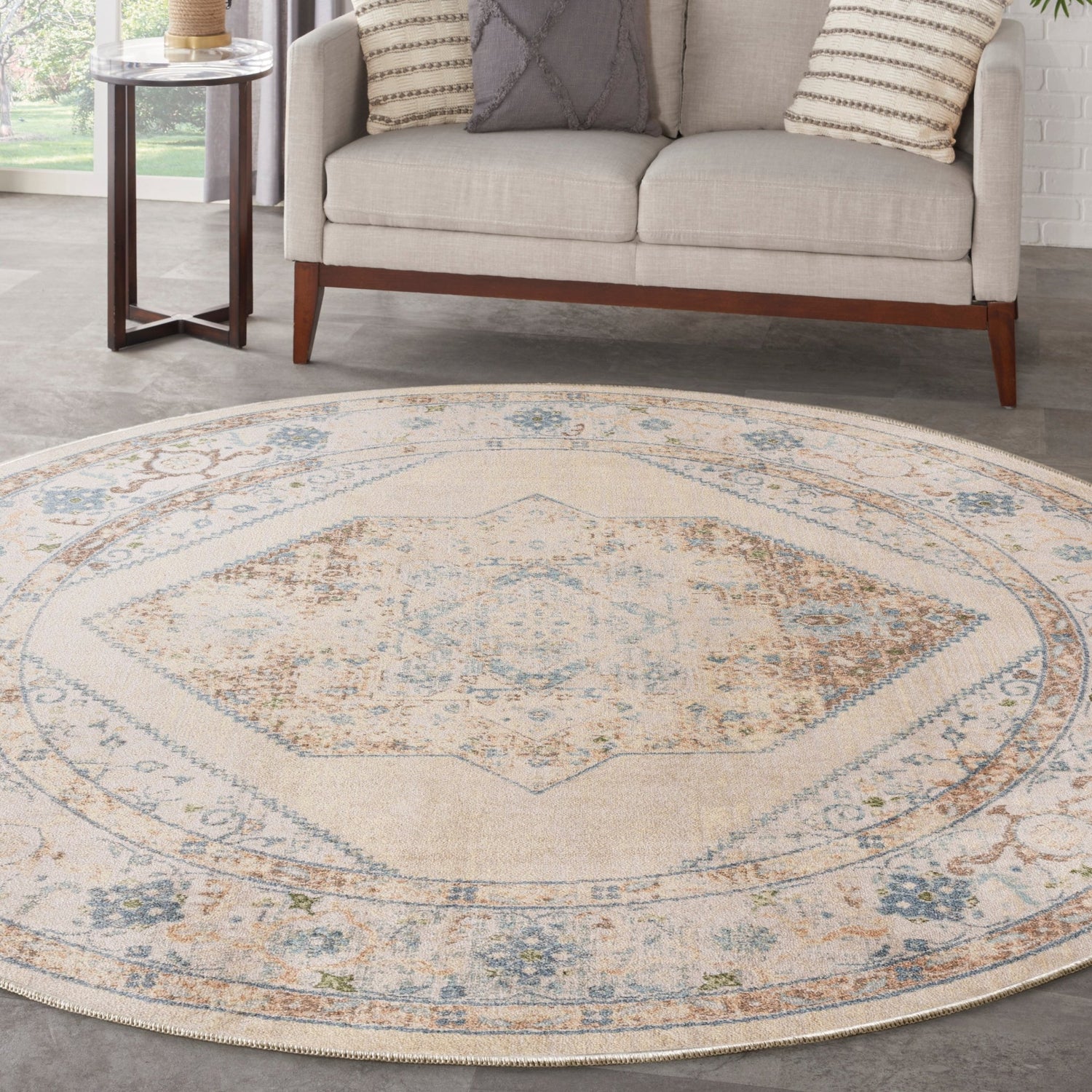 Nourison Astra Machine Washable Asw13 Ivory Blue Rug
