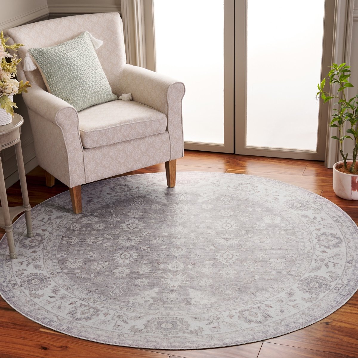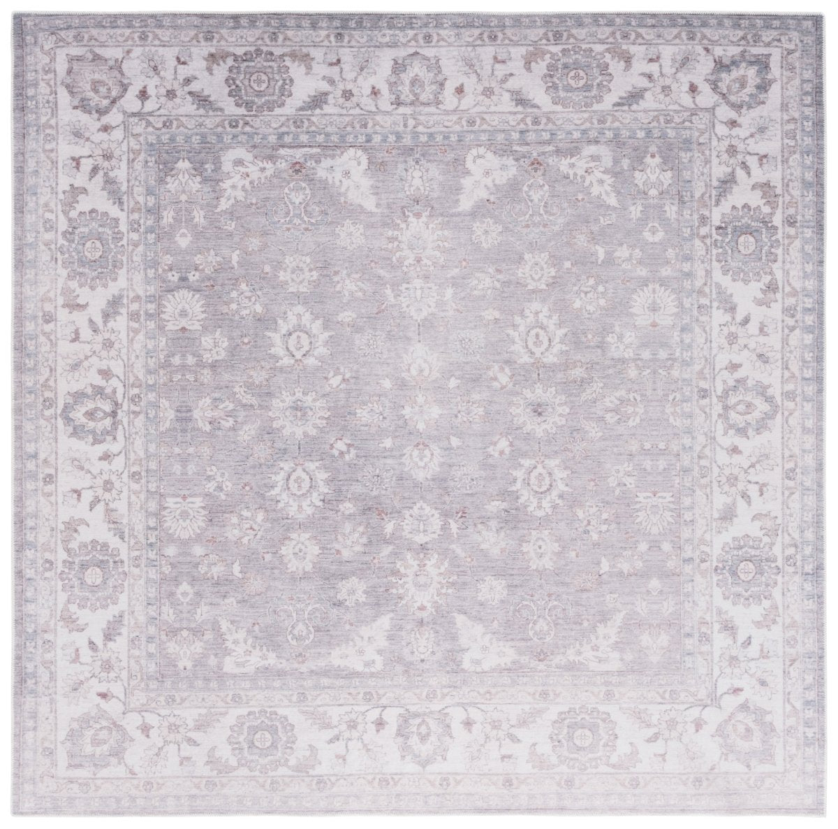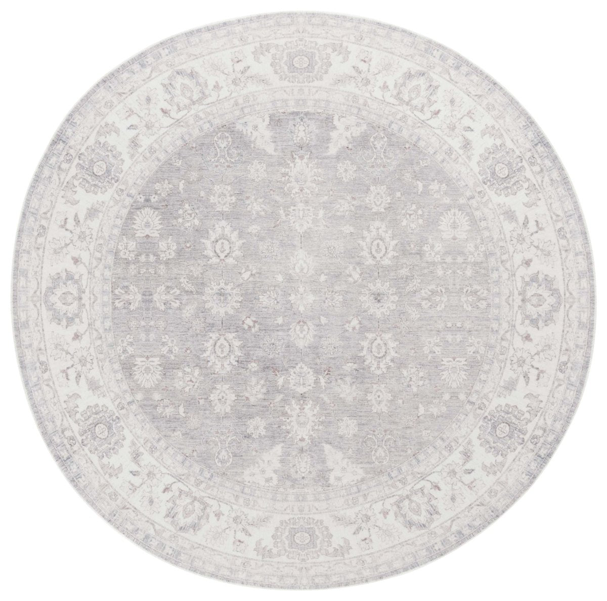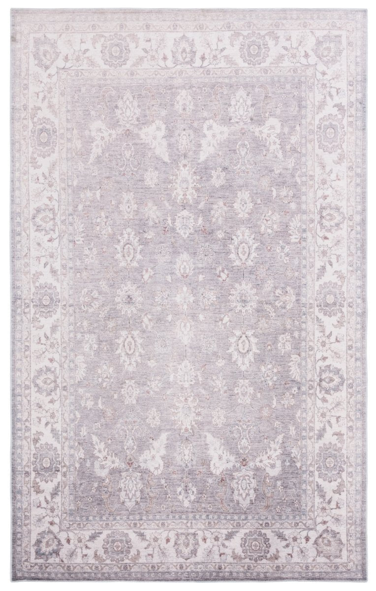 Crafted with precision using a Power Loomed technique, this rug boasts a low profile with a pile height of just 1/8", allowing for easy placement under furniture and in entryways. The premium quality polyester pile ensures durability and long-lasting beauty, all while being easy to clean, making it a practical choice for busy households. Originating from China, this rug embodies a timeless traditional style that exudes class and elegance. Its ornate pattern, visible in the image, features a beautiful array of floral and geometric motifs in a harmonious grey and ivory color scheme, adding a touch of sophistication to your decor. Not only is this piece a visual treat, but it's also designed with functionality in mind. The washable material allows for hassle-free maintenance, ideal for family living. Plus, the slip-resistant quality provides safety and ensures the rug stays in place, offering peace of mind in high-traffic areas. Invest in this charming area rug that combines tradition with modern practicality, bringing a refined and cozy ambiance to your home.