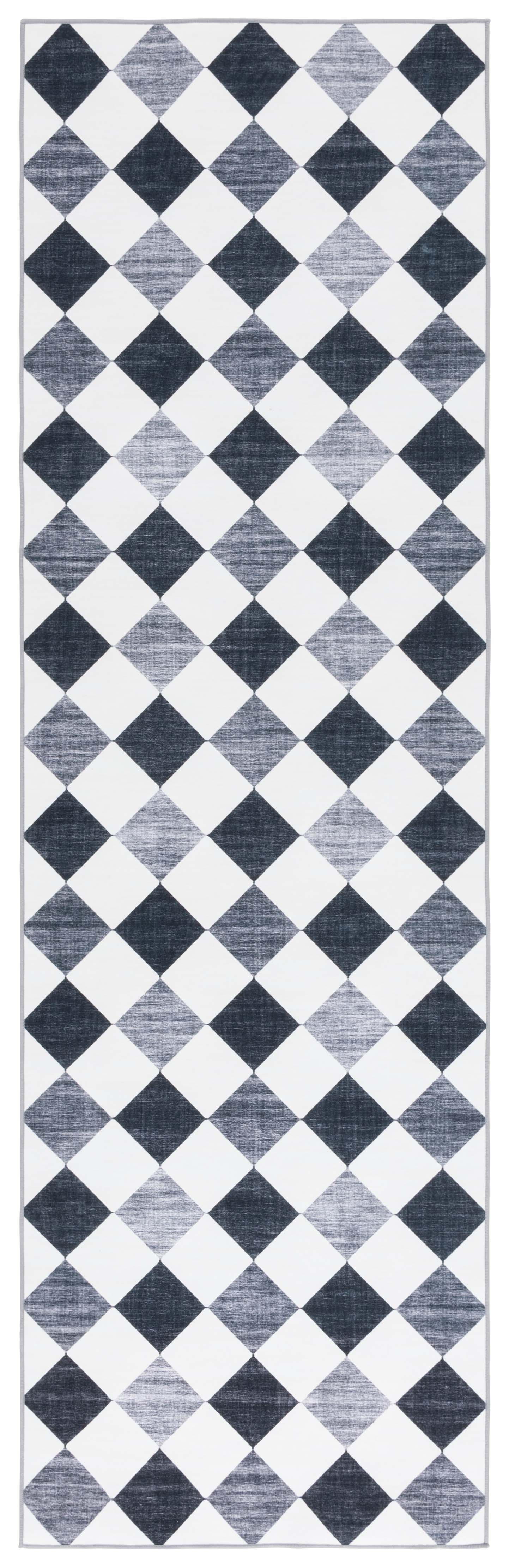 Crafted with meticulous precision using a power-loomed technique, this rug boasts a durable and resilient construction made from high-quality polyester. Made in China, it offers enduring beauty and is built to last. The 1/8'' pile height ensures a sleek look, while the easy-to-clean, washable material makes maintenance a breeze. Perfect for high-traffic areas, this rug is designed to resist slipping, ensuring a safer environment in your home or office. The rug's pattern, as depicted in the image, presents a harmonious blend of diamond shapes that will complement both modern and traditional decors. it's an excellent choice for those seeking a blend of style, comfort, and practicality. Add this timeless piece to your collection and enjoy the perfect blend of functionality and elegance.