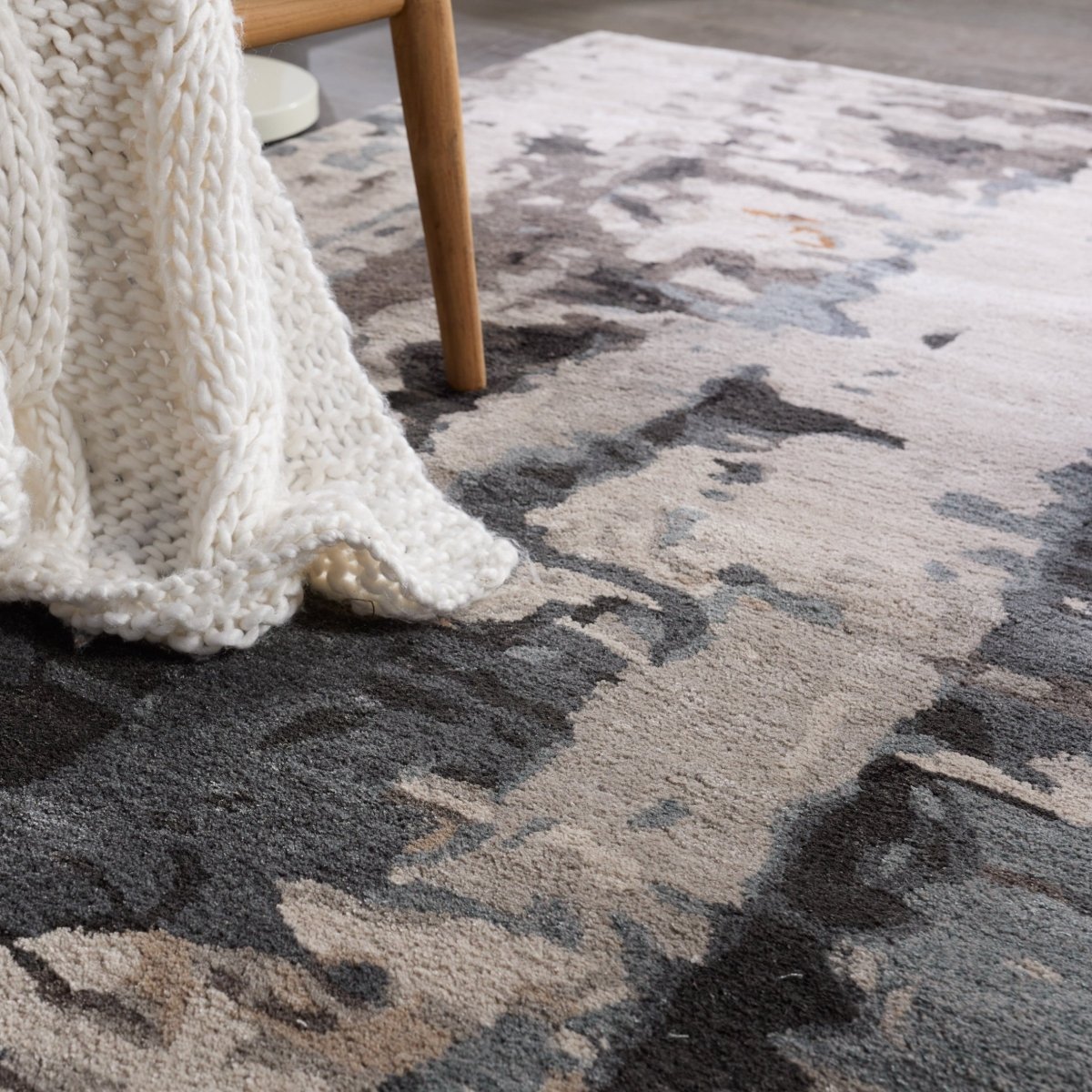 With a whimsical spirit and sophisticated flair, the Genesis collection features an assortment of hand-tufted rugs sure to liven any contemporary home. Punctuated by bold color, the Matcha design boasts a mottled abstract pattern for an eclectic touch of style. Tones of gray, slate, black, taupe, ivory, and hints of copper mix together for a mineral-inspired palette. Lustrous viscose blends elegantly with the natural wool fibers for a plush and ultra-soft feel.