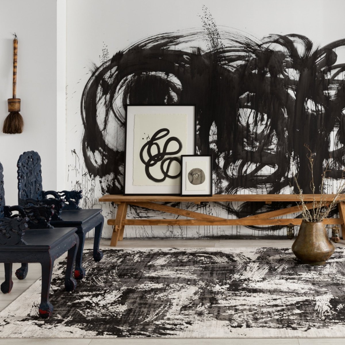 A modern statement for on-trend homes, the Graphite collection brings bold interest and dimension to contemporary interiors. The densely woven polyester and polypropylene blend lends a durable accent to heavily trafficked spaces. The Dusk design features an abstract design in moody hues of black, cream, and gray. The high-low pile provides texture and sheen to bedrooms, living rooms, offices, and entryways.