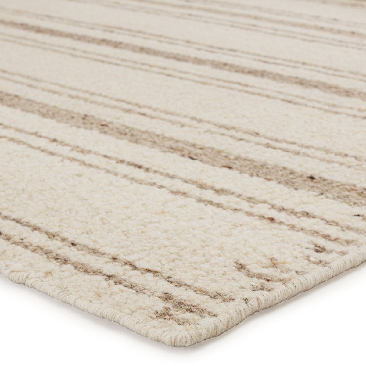 Rich with texture, the Mendoza collection expresses modern simplicity and inviting appeal. This rug boasts a re-invented kilim look with an on-trend shearling style and relaxed, neutral hues. Hand-loomed of soft and durable wool, this cozy rug features a colorway of cream and tan with flecks of deep brown. The unique ticking stripe design offers clean-lined yet eye-catching pattern to any space.