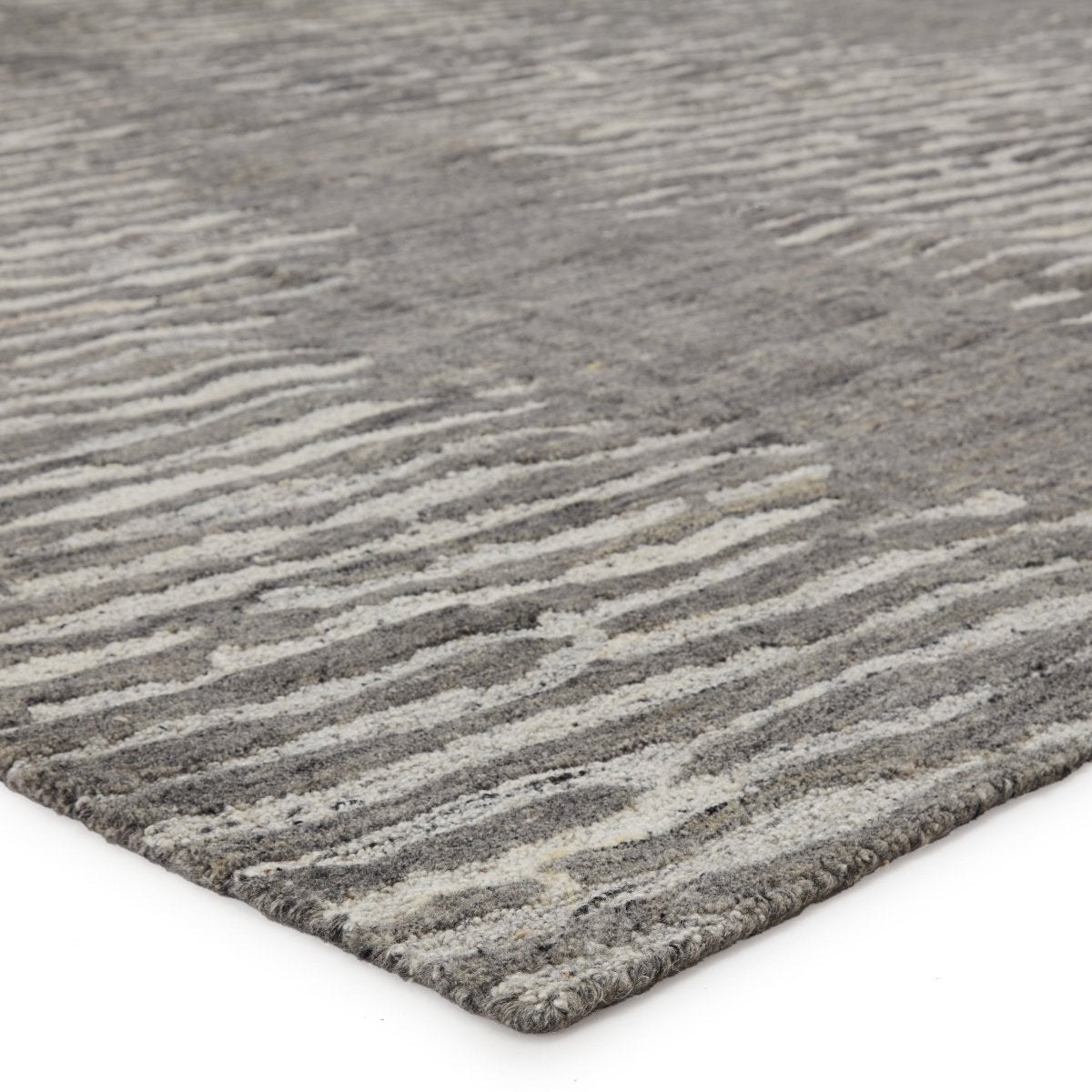 Pathways by Verde Home is a contemporary and livable assortment of exquisitely made micro-tufted designs. Crafted of naturally dyed wool, the neutral palette of these rugs is sourced from varied species and colors of sheep for a dimensional and organic-inspired look. The Stockholm rug features a painterly linear motif in soft, versatile tones. The directional tufting in the wool and viscose blend pile creates depth and beautiful texture, complementing the relaxed gray and ivory colorway.