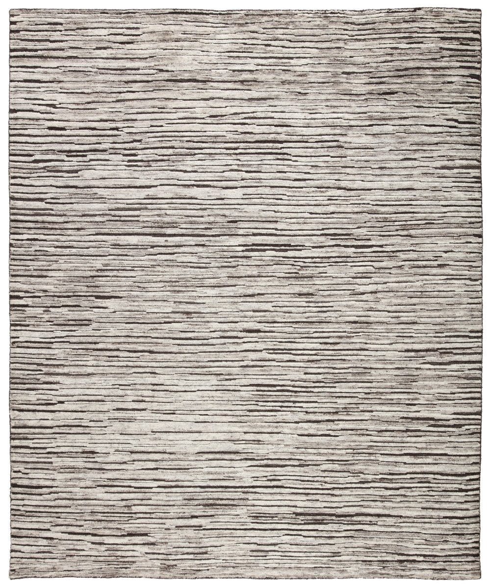 The captivating Reign collection introduces detail-rich design and inviting high-low pile to contemporary and traditional homes alike. Hand knotted by skilled artisans, the Ramsay wool rug creates depth and dimension with a cozy deep brown, gray, and ivory palette. Subtle ridges created by the organic linear pattern offer soft, tempting texture to this modern rug.