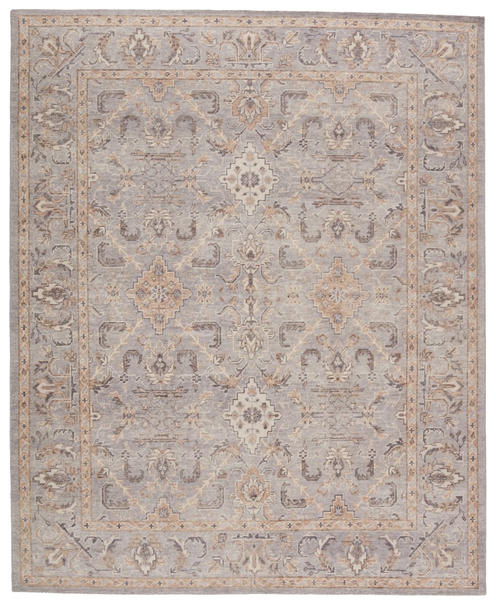 The Revolution collection is inspired by traditional style and beautifully detailed antique textile designs. The hand-knotted Wyndham area rug showcases a classic motif in neutral tones of gray and warm tan. The elegant border effect frames the ornate trellis design of this artisan-crafted wool rug.