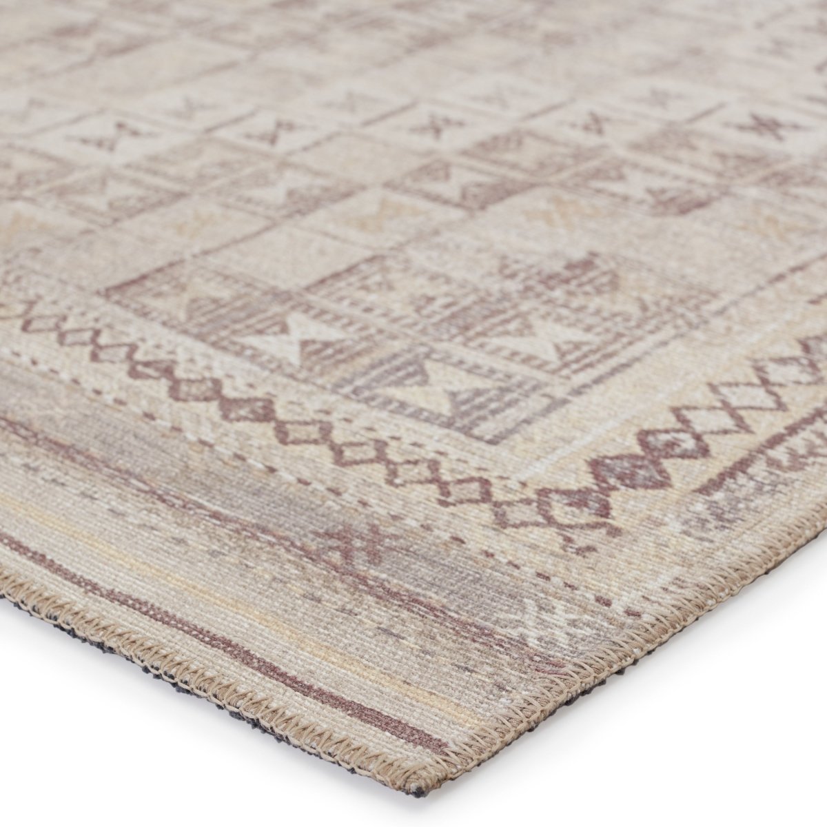 Inspired by well-traveled vintage designs, Kate Lester has joined with Jaipur Living to launch the Harman collection. This impressive assortment of antique textile designs lends heirloom-quality looks and livable style to any space. The Davina area rug showcases a tribal diamond pattern emphasized by hues of beige, cream and burgundy. This digitally printed rug boasts a perfectly distressed effect for effortless charm that is matched with durability to stand up to heavily trafficked spaces such as entryways, halls, kitchens, and living rooms.