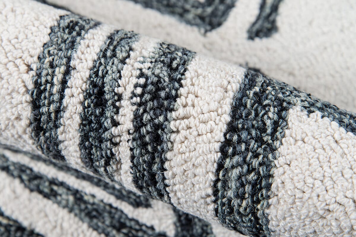 Neutral shades make this tribal area rug collection a cool decor component for urban bohemia. Natural wool fibers serve as the basis for the decorative floorcovering designs, each hand-hooked loop in the elaborate geometric patterns perfectly placed to maintain artful composition. The understated color palette pairs with every interior color scheme while exotic motifs work a worldly layer over hard flooring surfaces.