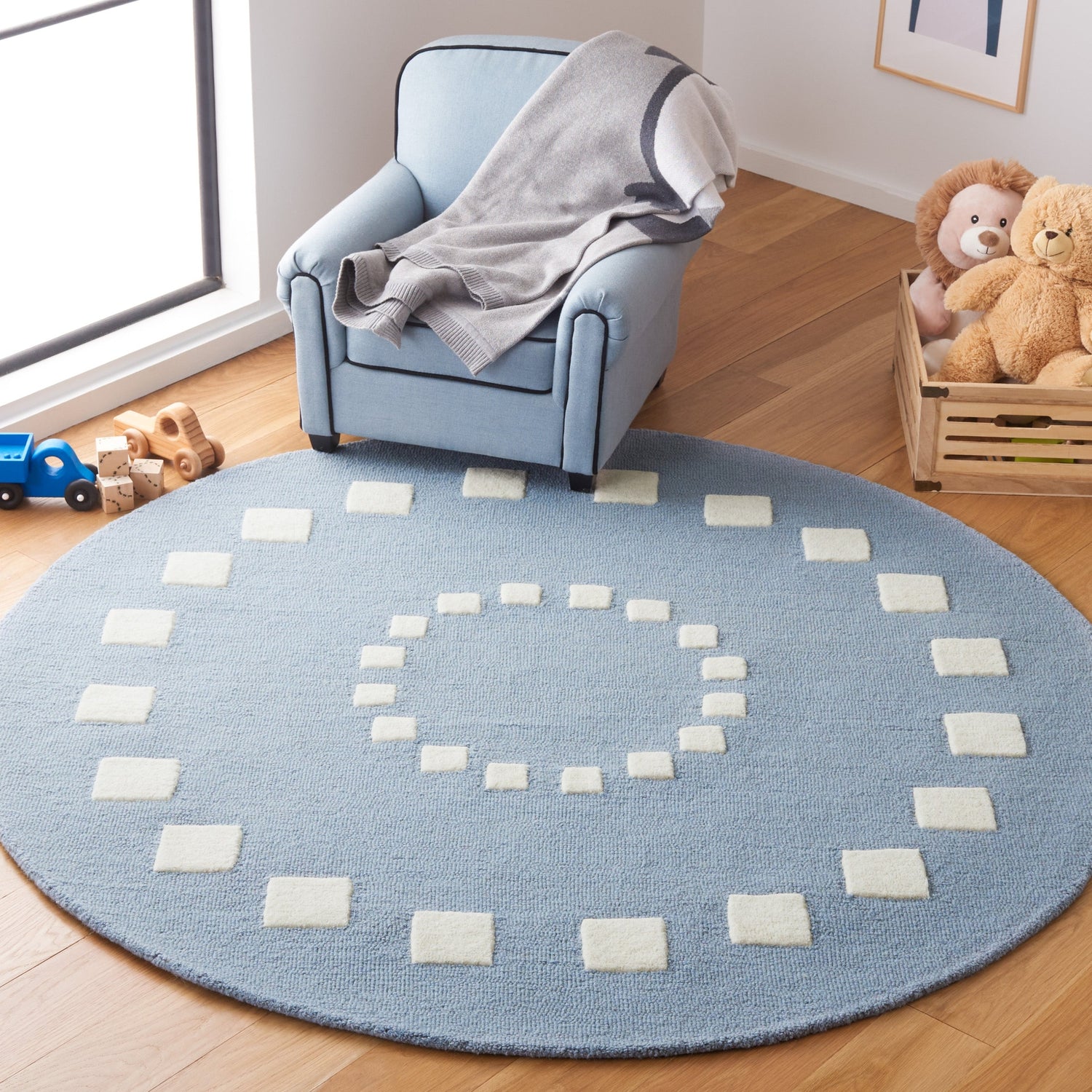 A special softness is offered by the Safavieh Kids collection of area rugs. Hand tufted of premium New Zealand wool, these rugs are lushly soft and invitingly warm. Offered in designs and colors that will appeal to any child, the Safavieh Kids collection of area rugs are the perfect addition to any playroom or bedroom. Select from round or rectangular in a size, color and design that will delight any child.