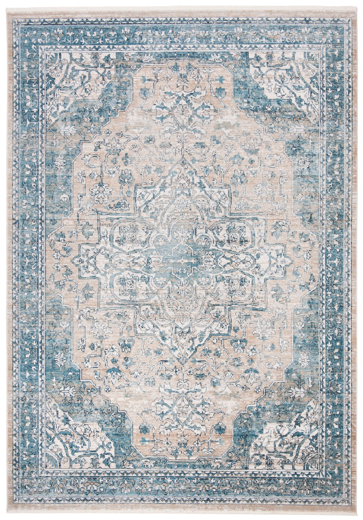 Victoria Rugs display classic rug artistry in rich colors and soft textures. Traditional medallions and floral motifs are colored in vivid hues and veiled in an antique patina. Power-loomed using soft synthetic yarns with petite fringe adding heirloom charm to room decor.