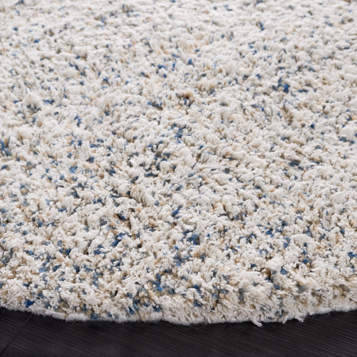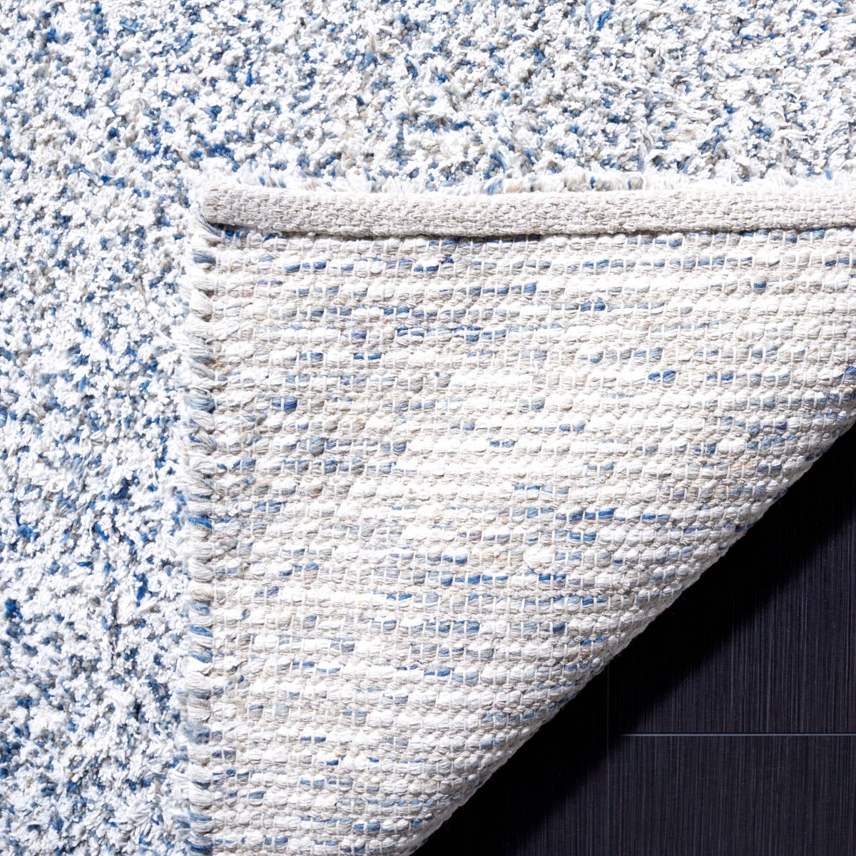 This small rectangle rug boasts a plush height of 5/8", offering a soft, cushioned feel beneath your feet. The breezy shades of ivory seamlessly blend with sophisticated hues of blue, creating a serene and inviting atmosphere that exudes timeless elegance. Constructed from a blend of premium wool and durable recycled polyester cotton mix, this rug is not only environmentally conscious but also promises lasting durability that will wit'stand the demands of everyday life while providing continuous comfort. The nature-inspired pattern, as captured in the image, provides a glimpse into the meticulous craftsmanship, with a harmonious mix of color and texture that lends an air of tranquility to your decor. This subtly speckled design adds depth and dimension to any room without overpowering, making it an ideal choice for any decor scheme seeking a touch of luxury and warmth. Invest in a piece of artistic heritage and sustainable quality with our Hand Woven Shag Area Rug, where comfort meets chic design, ready to embrace your home with its understated charm and superior craftsmanship.